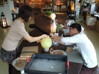 ※新居のあかりを二人でご一緒に作ってみませんか・・・通常の作品は一人で1つを作るのですが、この作品は紙漉をするだけなので、二人での共同作業ができます。模様を二人で半分ずつ(表裏で柄を変える)作ればリバーシブルに使えます。、お互いの個性が表現されて面白いですよ。二人で作っても受講料は同じです。