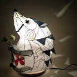 「灯芸クラス」の特筆すべきところは、「基礎クラス」のように初級からではなく、いきなり自由創作から始めるということです。難しそうに思われるでしょうが、実はこの方が上達が早いのです。しかも最初からハイレベルな作品が作れます。ペンギンの親子のあかりは、なんと第一作目なんです。働くお母さんがコツコツと作られました。