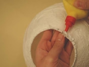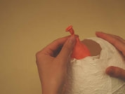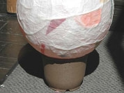風船に和紙を貼って球状のあかりを作ります。自分で和紙を漉く所からやるので人気の高い作品です。和紙を貼る時に間に色和紙などを挟み込み模様をつけます。この模様で作る人の個性が出ます。シンプルな形なのでどんなお部屋にも合います。和紙漉きは小学1年生でもできます。むしろ子供達の方が大人より上手いくらいです。