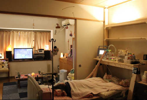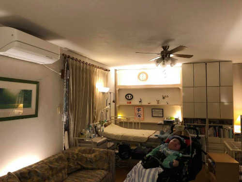 〜照明リノベーションをして頂いてから、本当にリビングが心地良いです。たまに、天井照明をつけてみると、なんだかしんどい感じで、あわてて間接照明に変えてしまいます。(中略) 呼吸器をつけた人を看る空間は、心地良くても暗くては用を成しません。吸引や注入の時、あるいは顔色や様子をチェックする時など、明るい光でないとリラックスどころかストレスがたまります。 ところが、橋田さんに手がけて頂いた間接照明は、ベッドの上が本当に明るく、天井照明よりはるかに細かいところまで良く見えます。そして、自分の影ができないのも、未だに毎日感激しています。それでいて、部屋全体は、何とも言えないほど、心地よいリラックスした空間なのです。〜